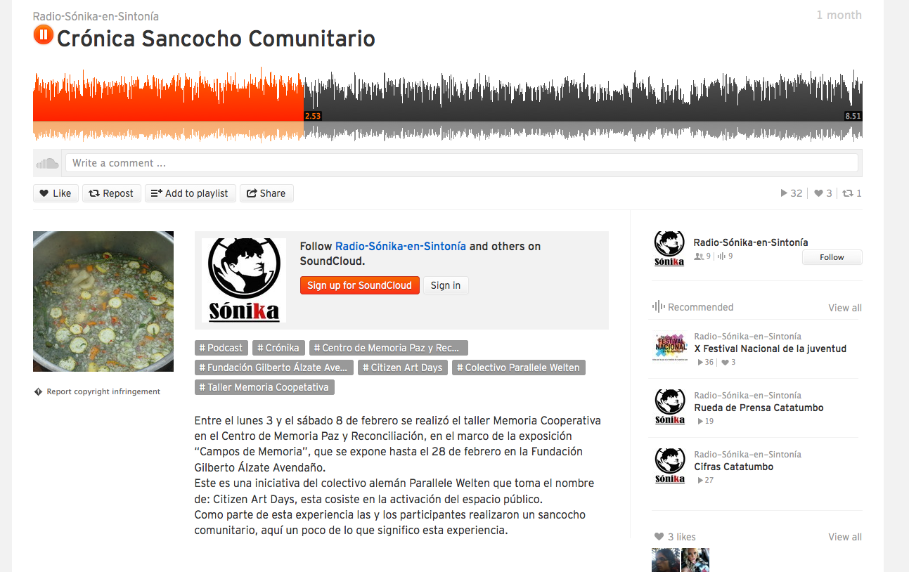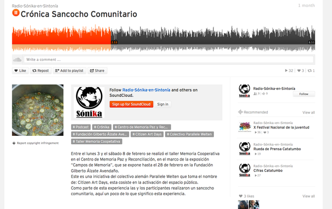 Spanisch, 9 min. https://soundcloud.com/radio-sonikaensintonia/cr-nica-sancocho-comunitario