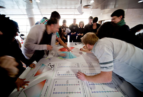 Die Teilnehmer des Workshops erforschen mit den Mitteln der partizipativen Dynamik den Prozess kollektiver Finanzierungen anhand eigener, realer Projekte.
