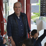 Bernhard Schmidt (DRK) ist Leiter der Notunterkunft für Geflüchtete in der Ruschestraße 104. Er versteht es als seinen Auftrag, die Bewohner*innen der Notunterkunft im Sinne ihrer Selbstbestimmung und gleichberechtigten Teilhabe am gesellschaftlichen Leben zu unterstützen, unabhängig von ihrem Aufenthaltsstatus oder ihrer Aufenthaltsdauer. Die persönlichen Geschichten, Bedürfnisse und Wünsche der Bewohner*innen der Notunterkunft sind ihm wichtig, und so unterstützt er Projekte wie den »Transitgarten«, gemeinsames Chor-Singen und verschiedene Begegnungsmöglichkeiten zwischen den Neuankömmlingen und alteingesessenen Kiezbewohnern. Durch diese und andere Initiativen versucht er, die soziale Distanz zwischen Geflüchteten und der Berliner Bevölkerung zu verringern.